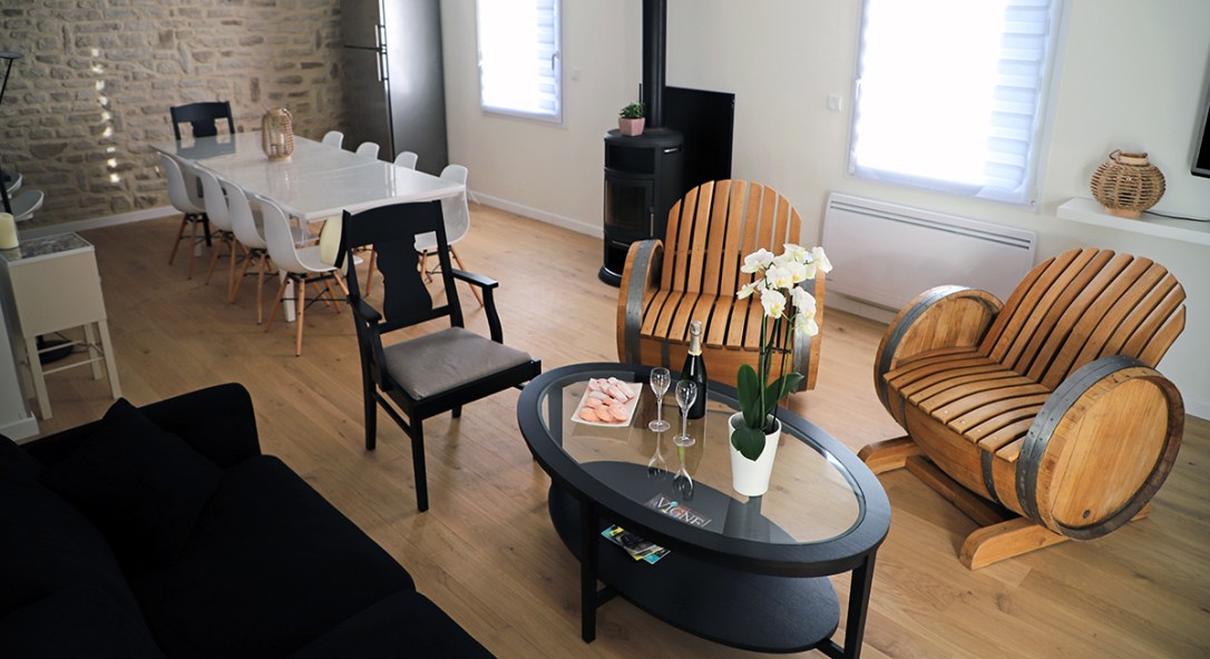 Afin de coller au style, et amateurs de décoration, nous avons choisi d’intégrer dans notre gîte des meubles et des détails rappelant notre profession. Quant au nom « Eloge des Bulles », il vient d’un jeu de mot entre les cabanes de vignes appelées chez nous « loges » , et bien sûr les bulles de champagne …