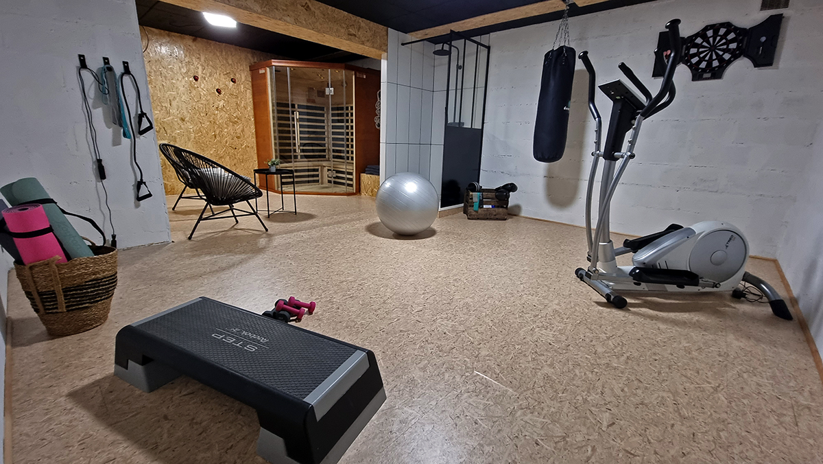 - une Salle de sport avec vélo elliptique et sac de boxe