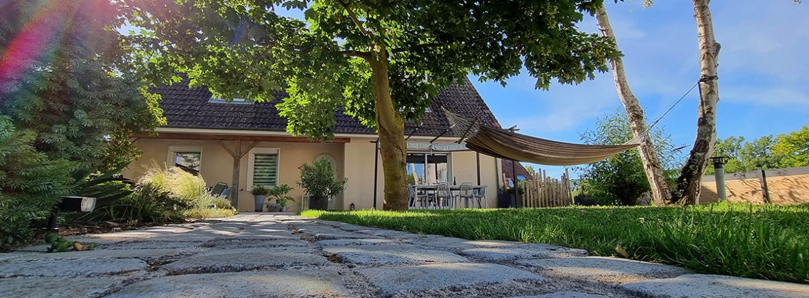 Vous pourrez profiter pleinement des charmes d’une maison de campagne car notre gîte, en plus de disposer d’une cour fermée et 4 places de parkings, possède deux terrasses (devant et derrière la maison) avec vue sur vignes.
